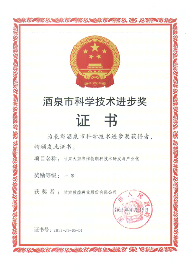 2015年甘肅省農(nóng)牧漁業(yè)豐收獎(jiǎng)一等